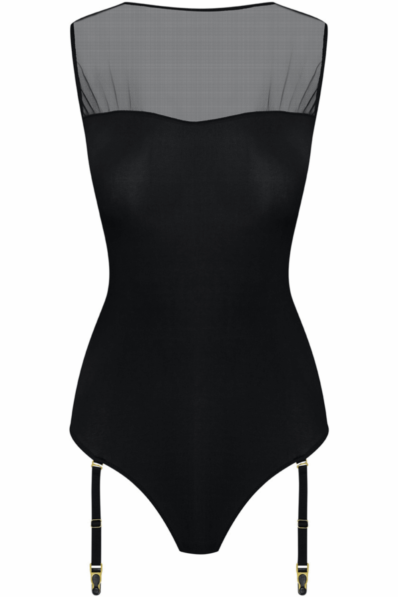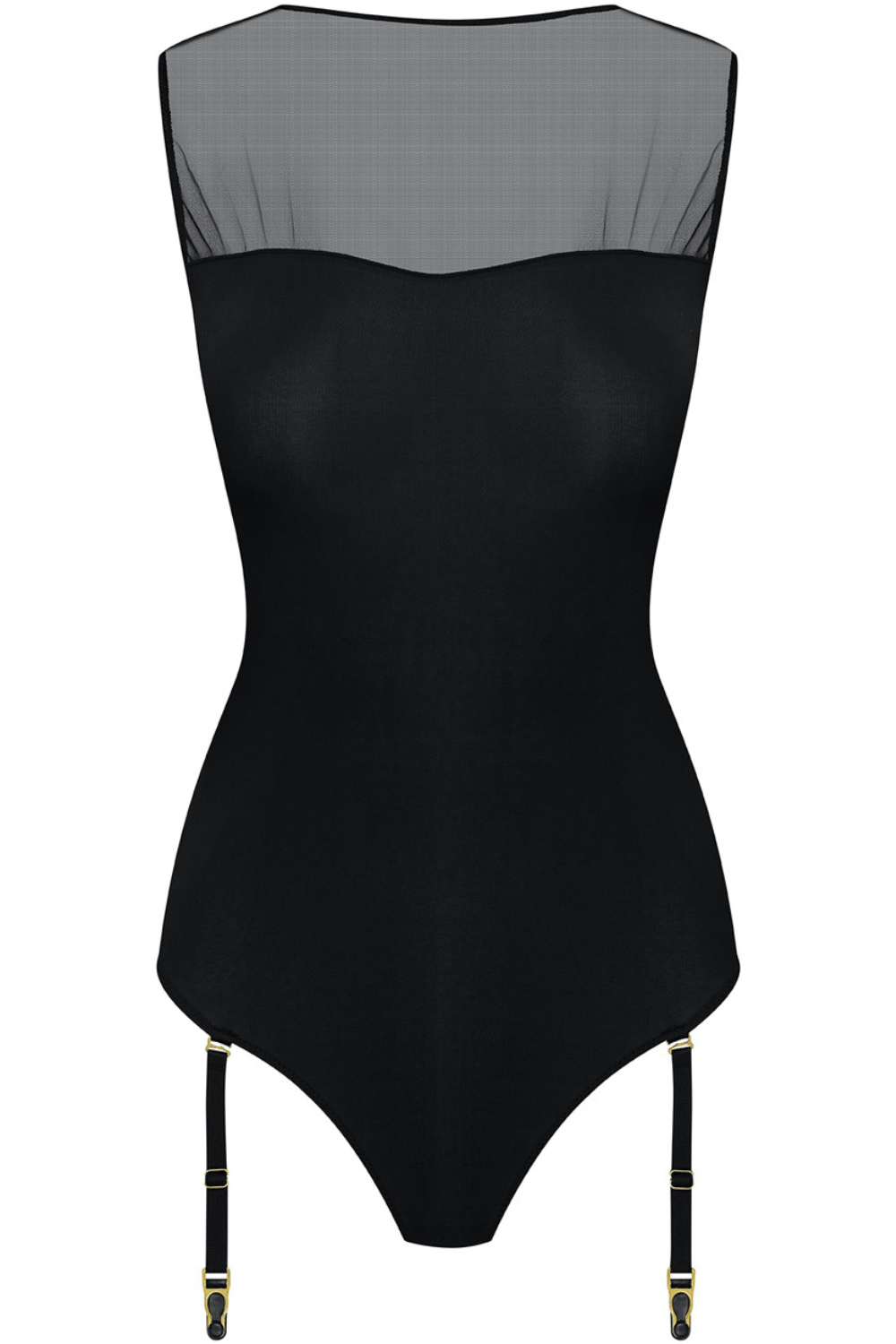 Monsieur Le Fran?ais’s lingerie expertise carries through exquisitely to ready-to-wear, expect seductive cuts and luxurious fabrics. This black bodysuit can be worn as lingerie or outerwear. Part of the ‘Madame R?ve’ collection this black bodysuit it’s cut from soft opaque microfibre and transparent mesh. It has features a lightly gathered mesh neckline, thong cut and suspender straps which are both adjustable and detachable?depends on your liking.